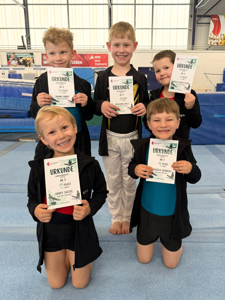 Unter der Leitung von Alena Ebensing und einem erweiterten Trainerteam trainierten Harry S. und Friedrich H. (AK7), Harry T. und Mykyta (AK8) und Benjamin (AK9) nur vier Wochen für diese Überprüfung.